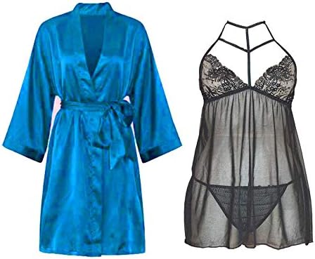 فستان نوم شفاف باربطة بدون ملابس داخلية