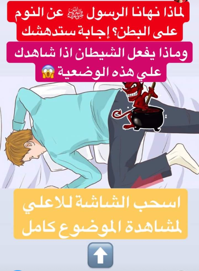لماذا نهانا الرسول عن النوم على البطن. لماذا نهانا الرسول ﷺ عن النوم على البطن وماذا يفعل الشيطان ماذا يفعل الشيطان للمراة اذا راها نائمة على بطنها. بسم الله والصلاة والسلام على رسول الله. هل النوم على البطن حرام سؤال أجاب عنه الشيخ محمد وسام أمين الفتوى بدار الإفتاء المصرية وذلك خلال فيديو منشور له عبر صفحة الإفتاء على يوتيوب. المهرة بوست وكالات الثلاثاء 27 مارس 2018 11 00 مساء من السلوكيات غير المرغوبة في الإسلام هي النوم على البطن فقد نهى رسول الله عن ذلك لأنه يضر بالجسد قال طخفة بن قيس الغفاري.