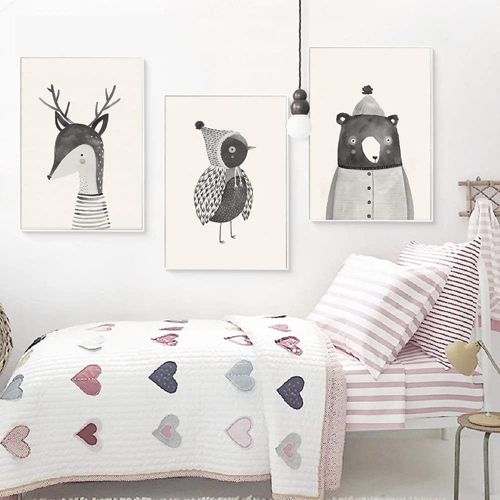 لوحات جدارية على شكل حيوان غزال والغابات من القماش لصور غرف الأطفال وديكور غرفة نوم الأطفال