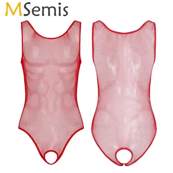 قميص نوم رجالي مثير شبكي شفاف بأكمام طويلة قميص نوم ضيق وشفاف ذو شبكة صيد السمك قميص نوم