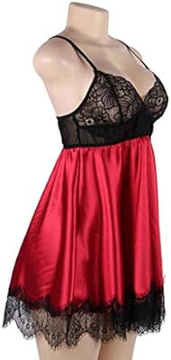 ملابس داخلية نسائية مثيرة مقاس كبير فستان نوم مثير بشق عالي ملابس نوم مثيرة باللون الأحمر والأسود بسعر الجملة