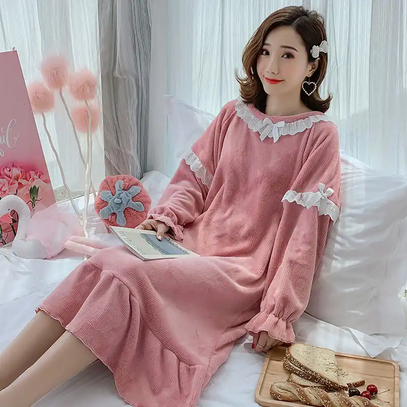 فستان نوم شتوي جديد 2019 من المخمل المرجاني للنساء مقاس كبير ملابس نوم فضفاضة جميلة للطلاب ملابس نوم طويلة من الفلانيل للنساء w1703