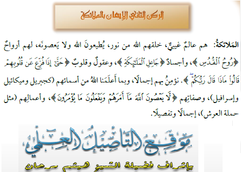 آم ن الر س ول ب م ا أ ن ز ل إ ل ي ه م ن ر ب ه و ال م ؤ م ن ون ك ل آ م ن ب الله و م ل ائ ك ت ه و ك ت ب ه و ر س ل ه البقرة. هو الركن الثاني من أركان الإيمان في الإسلام ولا يصح إيمان العبد حتى يقر به فيؤمن بوجودهم وبما ورد في القرآن الكريم والسنة النبوية من صفاتهم وأفعالهم. تعلم أحكام الإيمان بالملائكة من خلال درس الكتروني تفاعلي. الإيمان بالملائكة الملائكة الايمان بالملائكة الاسلام الإيمان بالملائكة العقيدة السنة عالم الملائكة حقيقة.