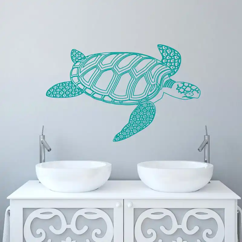 سلحفاة الجدار ملصق السلحفاة ملصق فينيل الشارات السلحفاة السلاحف البحر الحيوان المحيط بحري البحرية ديكور الحمام النوم b708