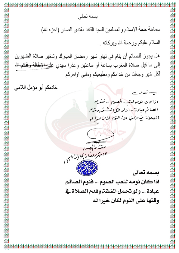 Hadiah dari perbuatan juga akan berlipat ganda. ن و م الص ائم ع ب ادة وجزاكم الله عنا وعن المسلمين خيـر الجزاء. ر و ي ع ن الن ب ي صلى الله عليه و آله أ ن ه ق ال. ن و م الص ائ م ع ب اد ة و ص م ت ه ت س ب ي ح و د ع اؤ ه م س ت ج اب و ع م ل ه tidur orang puasa adalah ibadah.