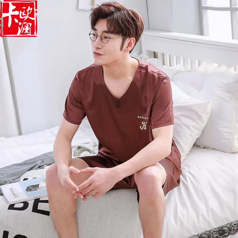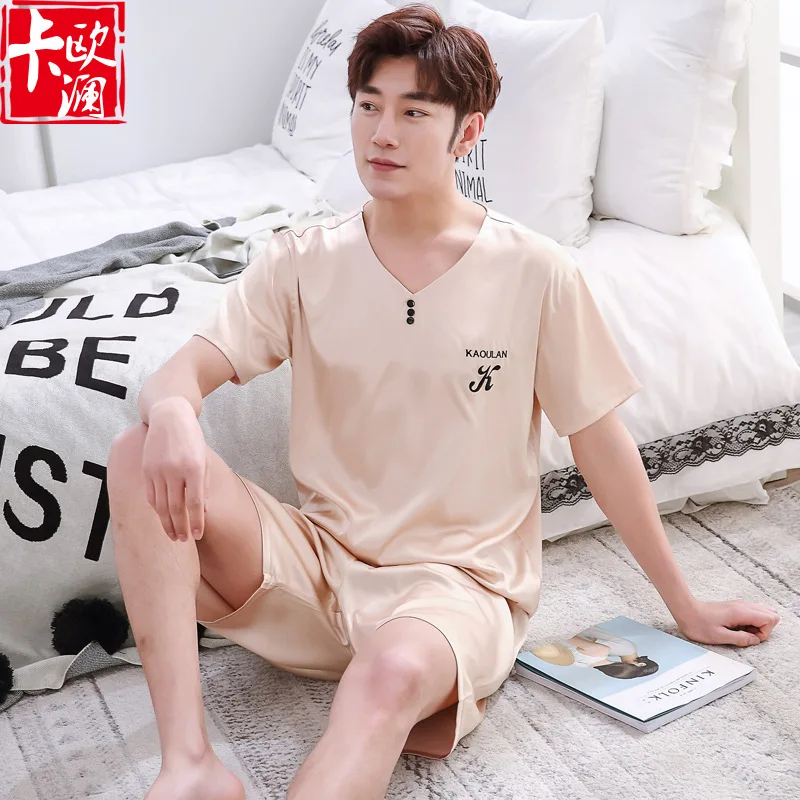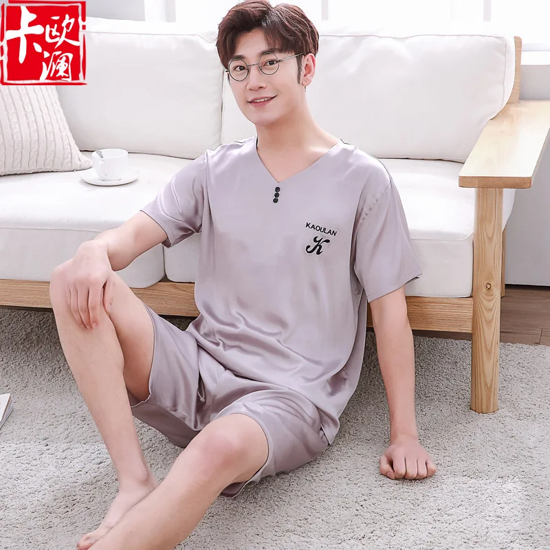 بيجامات صيفية للرجال مطبوعة بأكمام قصيرة بيجامات تقليد من الحرير والبوليستر للرجال طقم بيجامات من الساتان للرجال ملابس نوم بيجامات وسهرات
