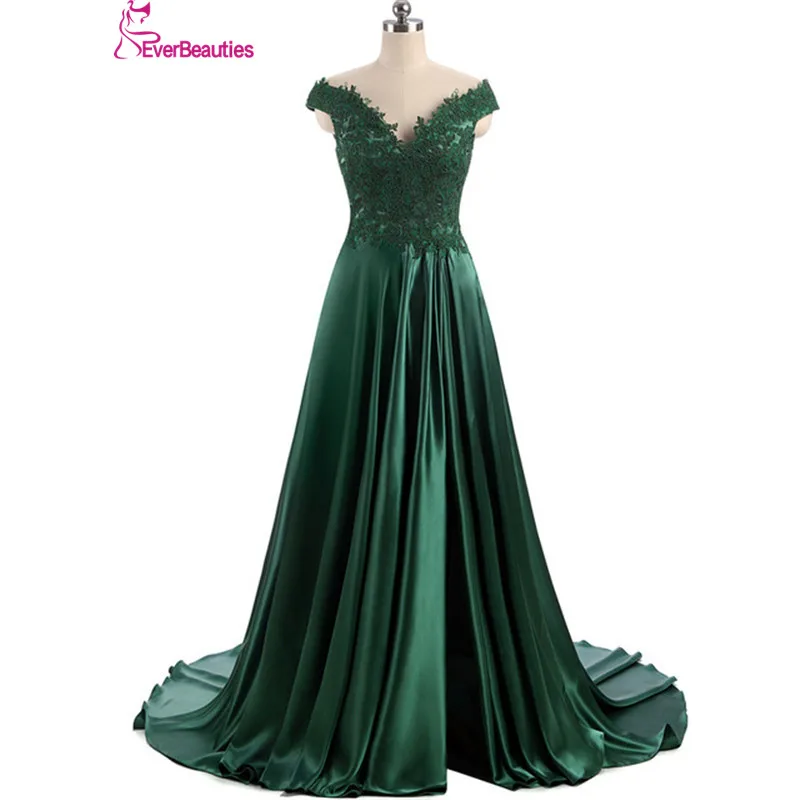 فستان سهرة من robe de soiree elie saab 2020 طويل أخضر داكن بأكمام كاب بتصميم مقسم من الساتان vestidos de noite para casamento